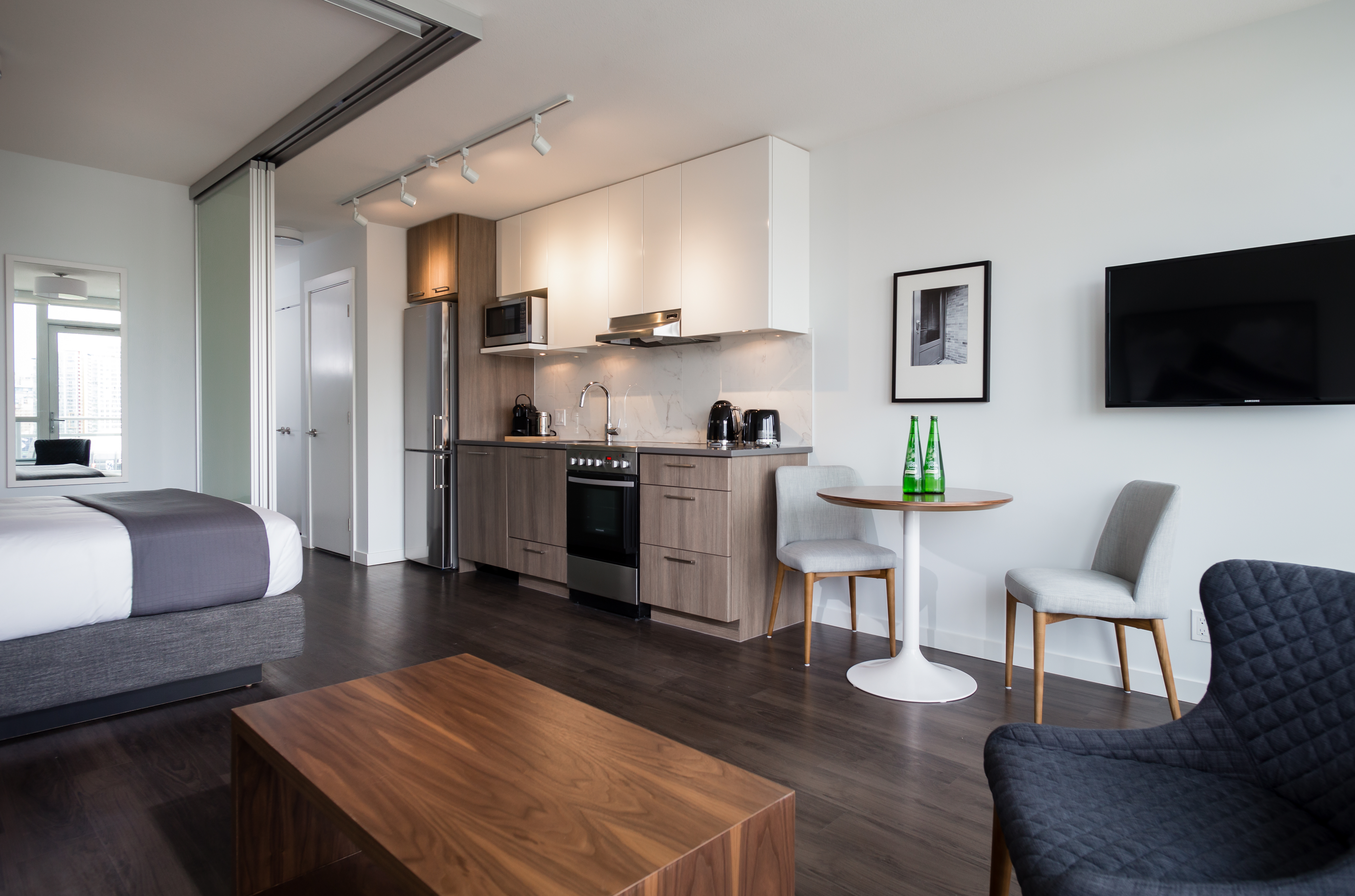 BLUESKY offers accessibility to many of the city’s most celebrated restaurants, bars, shops, and services, all within walking distance. At the foot of the building is Dalina Café, a local shop offering coffee, food options and specialty grocery items to take home. Residents can also enjoy a 2,000 sq foot rooftop terrace, a lounge, fitness studio and even a workshop.